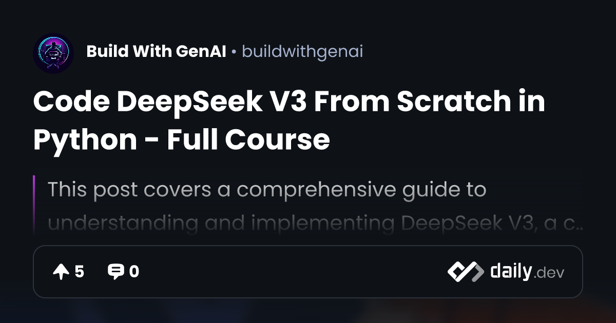 Code DeepSeek V3 From Scratch in Python - Full Course | daily.dev