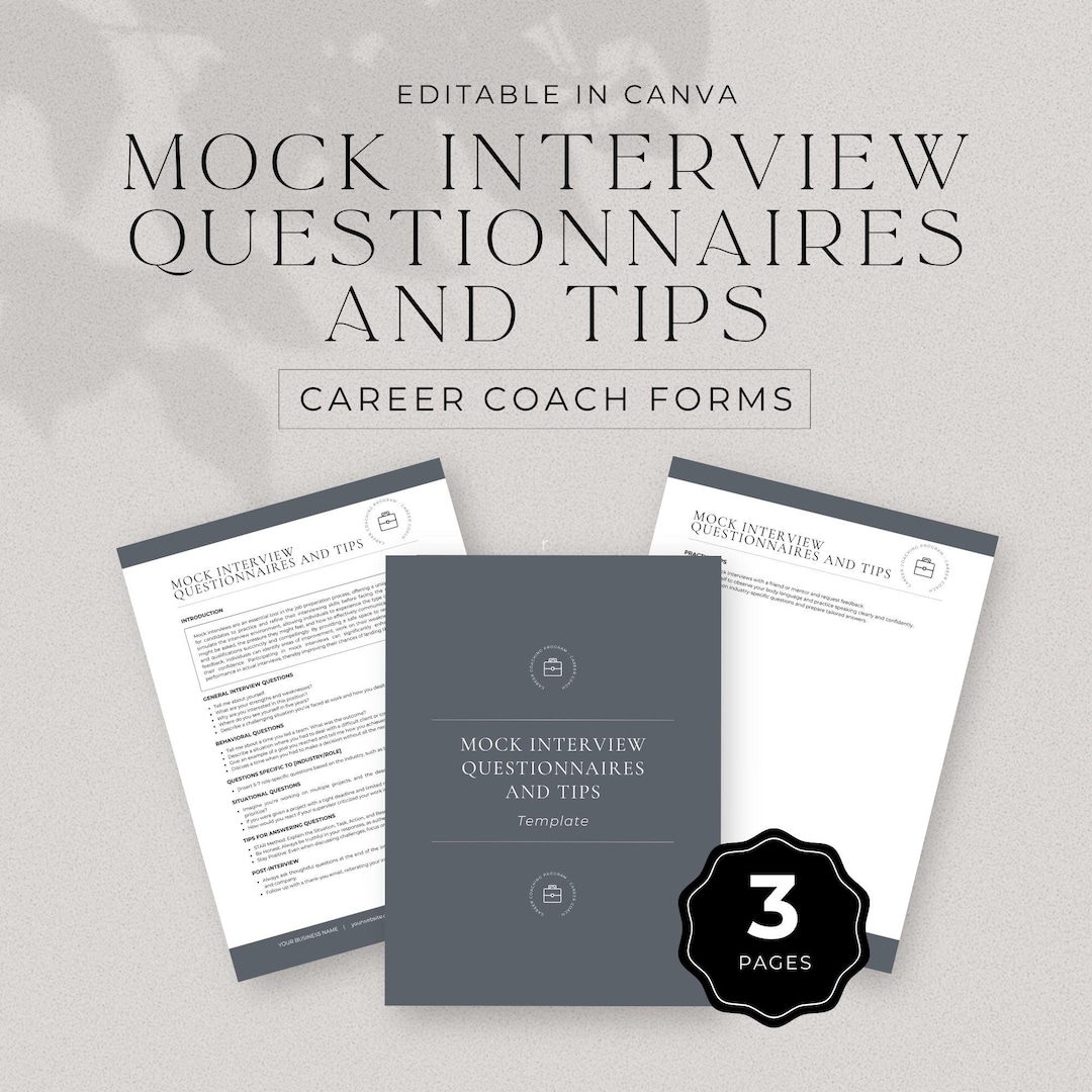 Mock Interview Questionnaires and Tips Template for Career Coach, Job ...