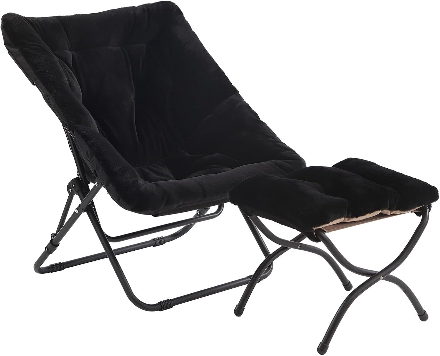 Folded Chair with Ottoman, Soft Faux Fur Oversized Folding Accent Chair ...