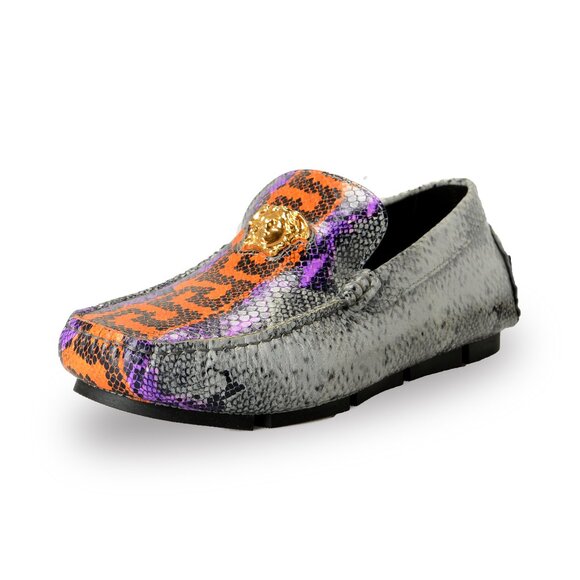 Versace python print leather loafers with medusa head grey metal emblem ...
