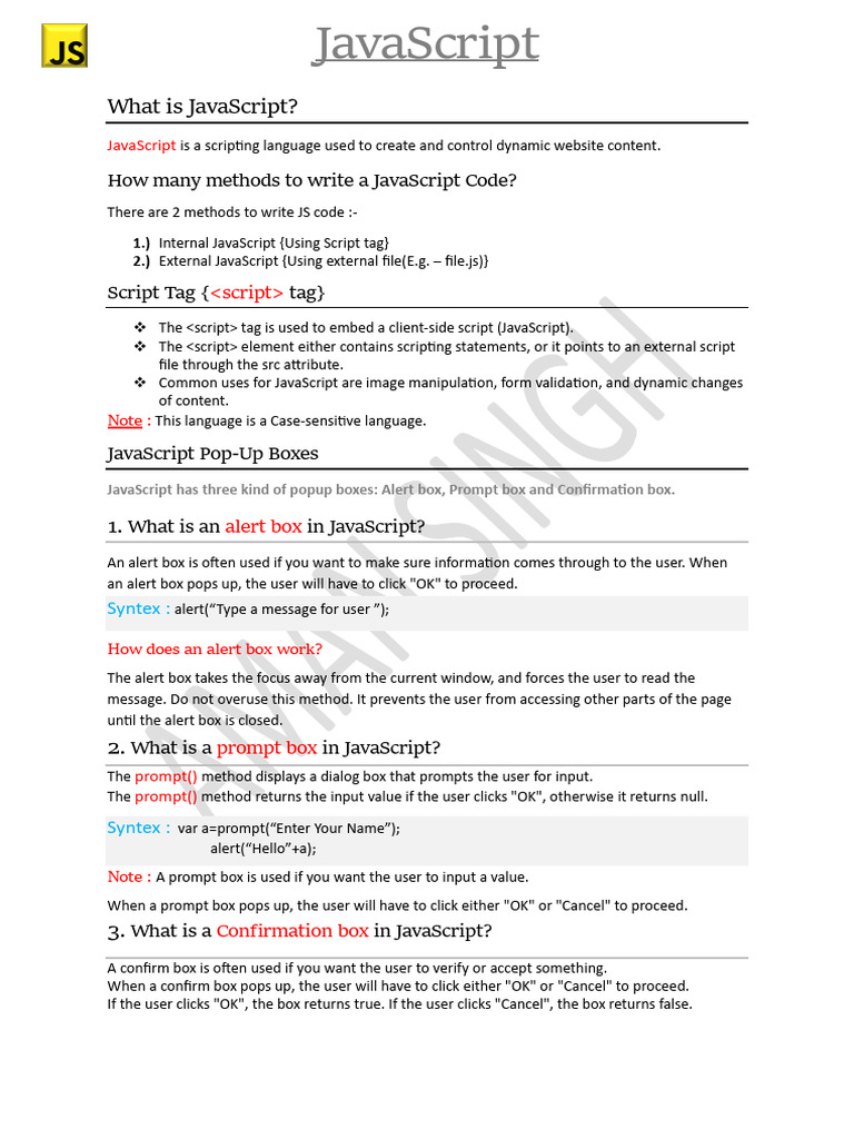JavaScript NOTES | PDF | Java Script | Web Development