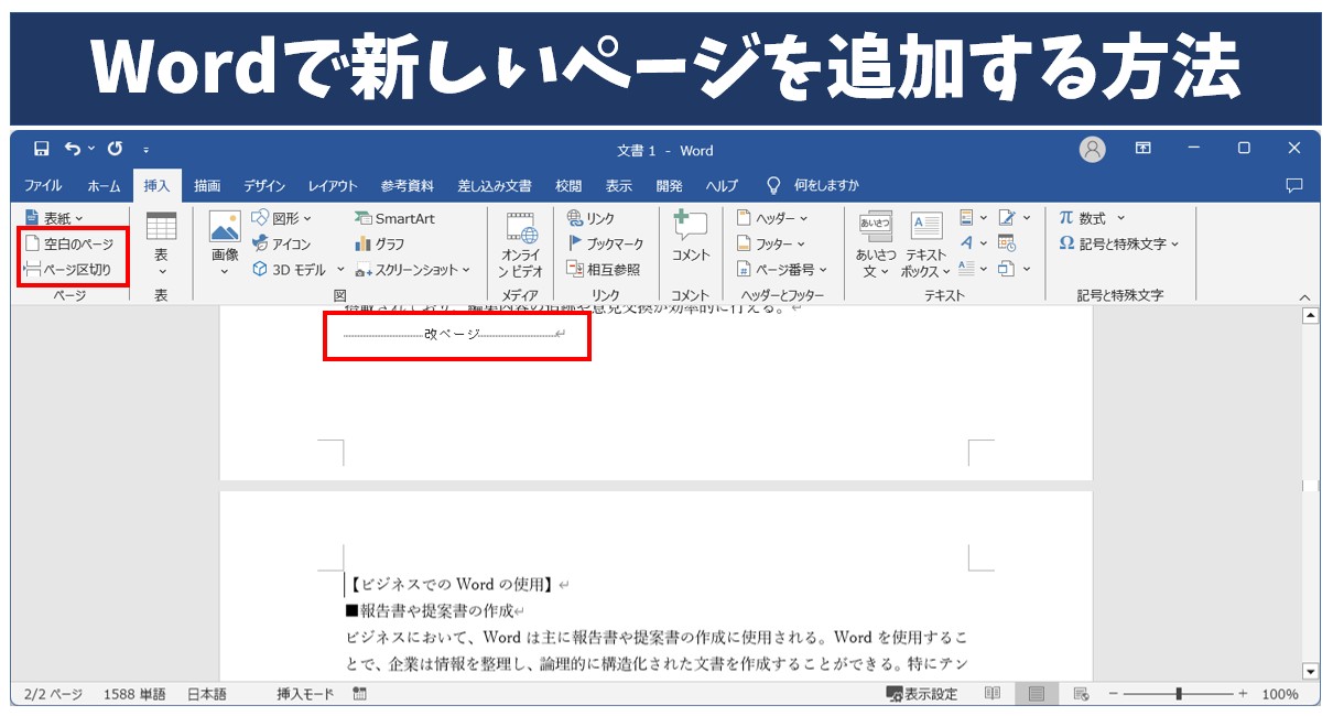 Wordでページを追加する方法!新しいページを挿入する手順まとめ ※