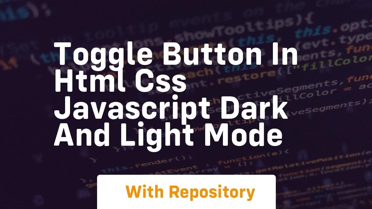 Toggle Button In HTML CSS JavaScript | Dark and Light Mode - YouTube