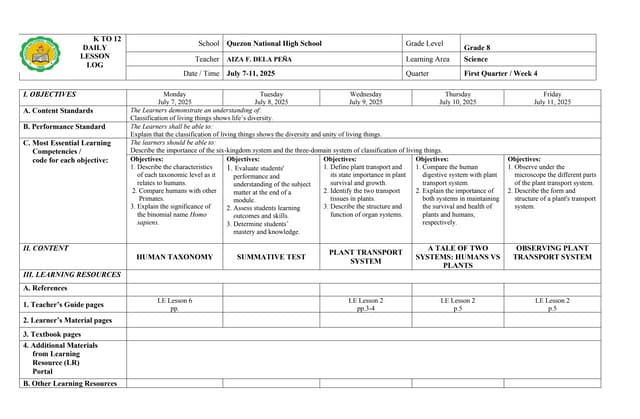 Lesson plan Science 7 - DAILY LESSON LOG IN SCIENCE 7 I CONTENT ...