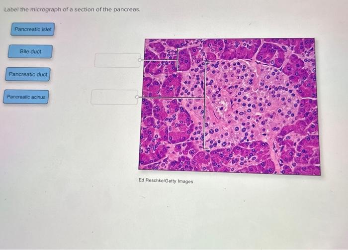 Solved Label the micrograph of a section of the pancreas. Ea | Chegg.com
