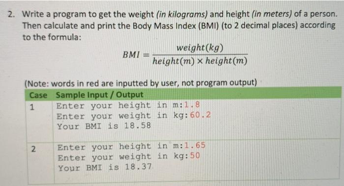 Solved 2. Write a program to get the weight (in kilograms) | Chegg.com