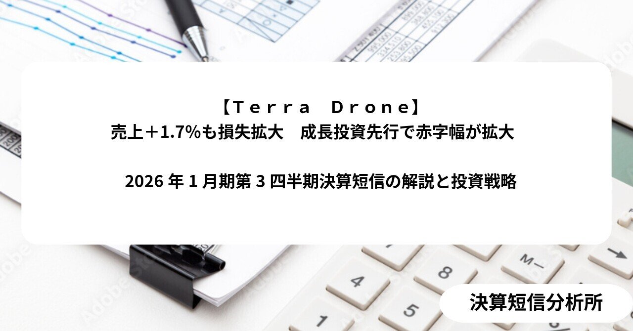 【Terra Drone】売上+1.7%も損失拡大 成長投資先行で赤字幅が拡大 2026年1月期第3四半期決算短信の解説と投資戦略|決算短信分析所