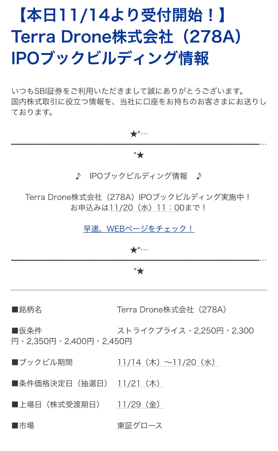 Terra Drone(278A)のIPO(新規上場)補欠当選! | IPO初値予想主観 IPOゲッターの投資日記