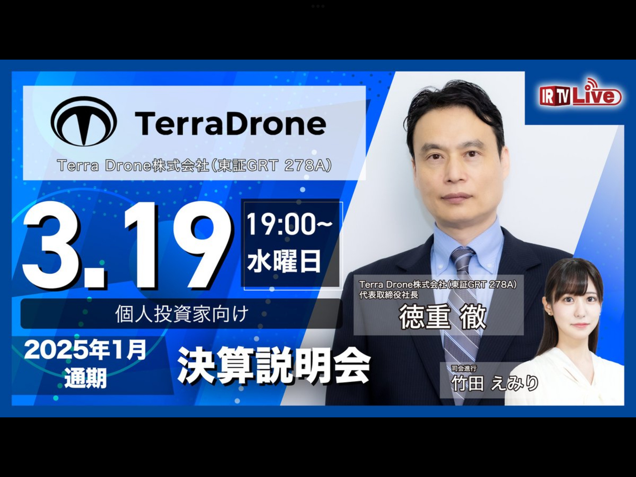 Terra Drone[278A]:個人投資家向けオンライン会社説明会のお知らせ 2025年1月31日(適時開示) :日経会社情報 ...