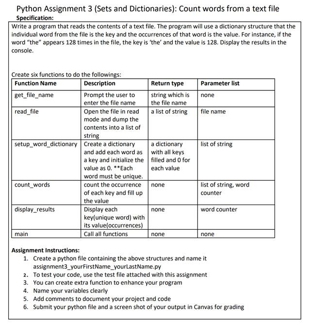 Solved Python Assignment 3 (Sets and Dictionaries): Count | Chegg.com