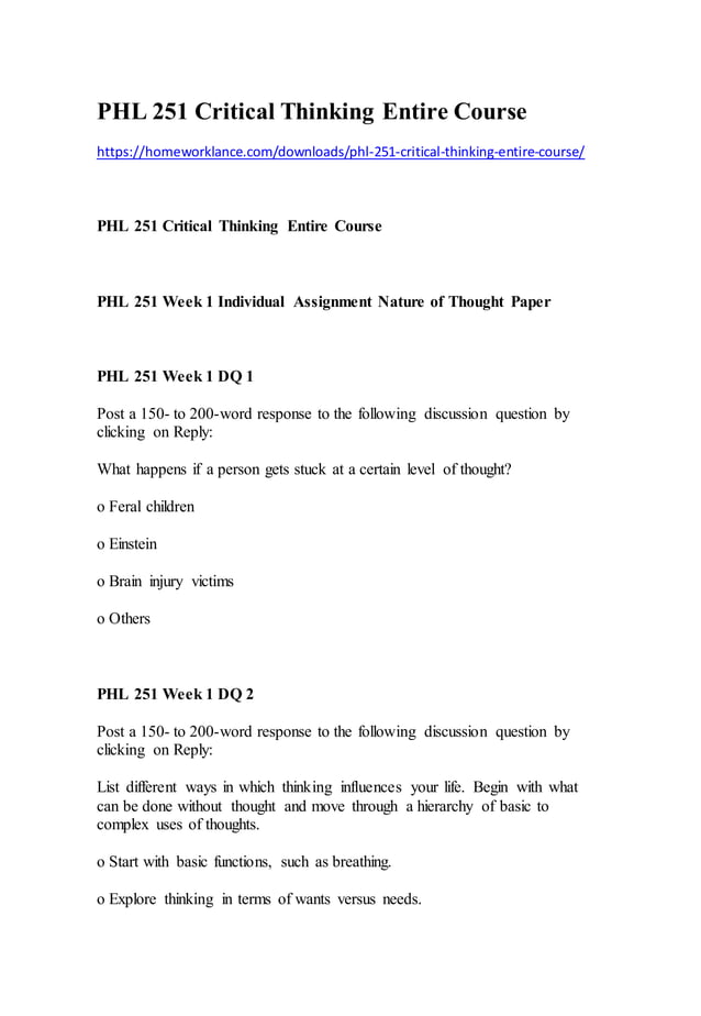 Critical thinking - mmm - 1. Critical Thinking courses aim to develop ...