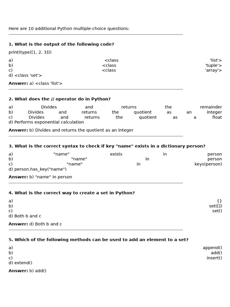 Python Basics MCQs with Answers (100 Multiple Choice Questions for ...