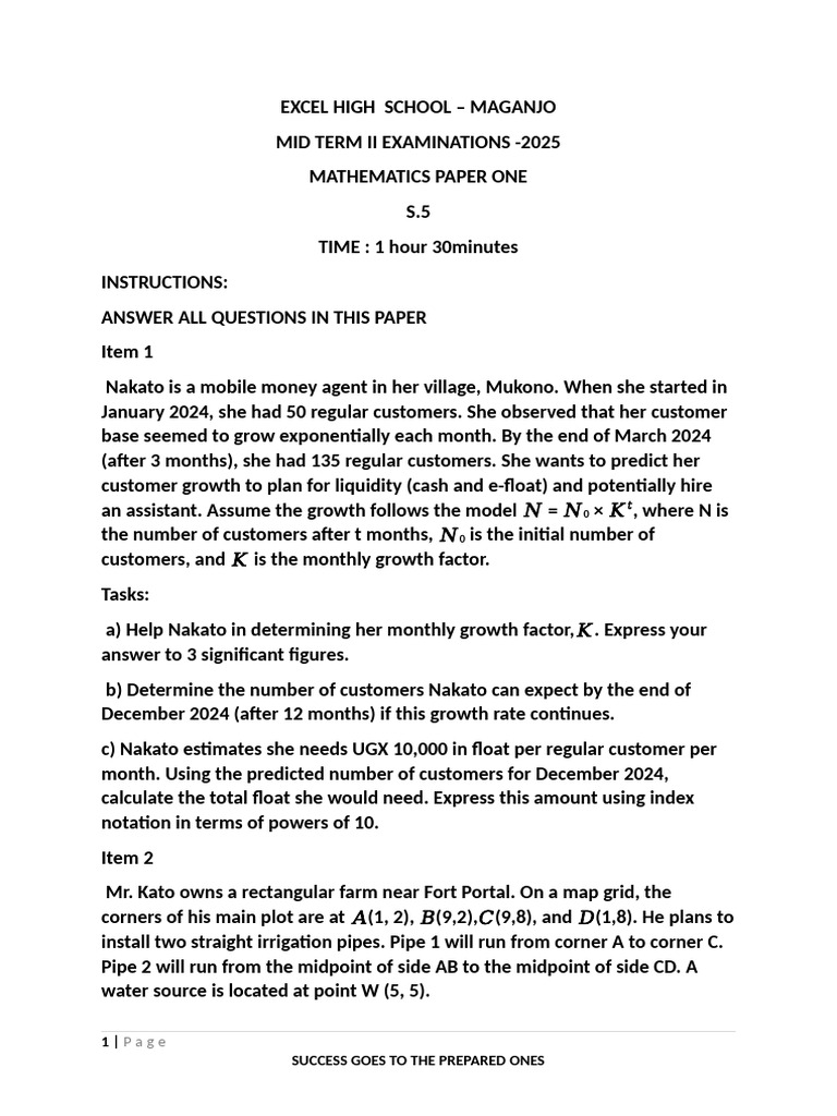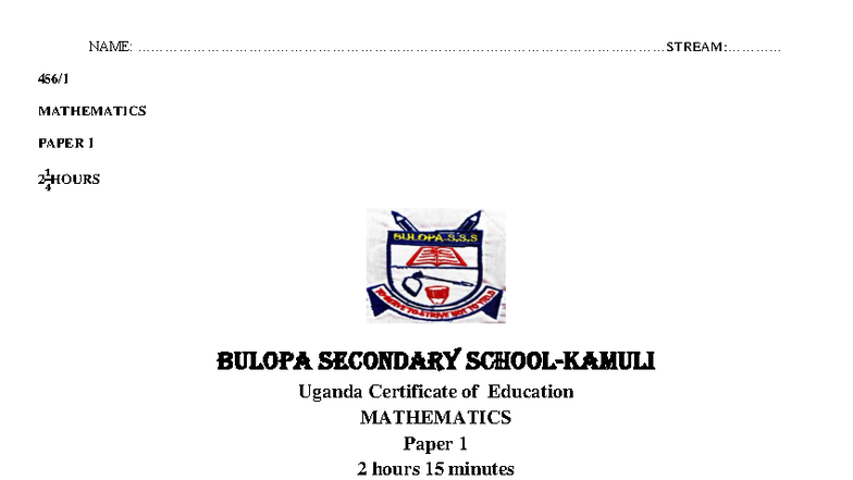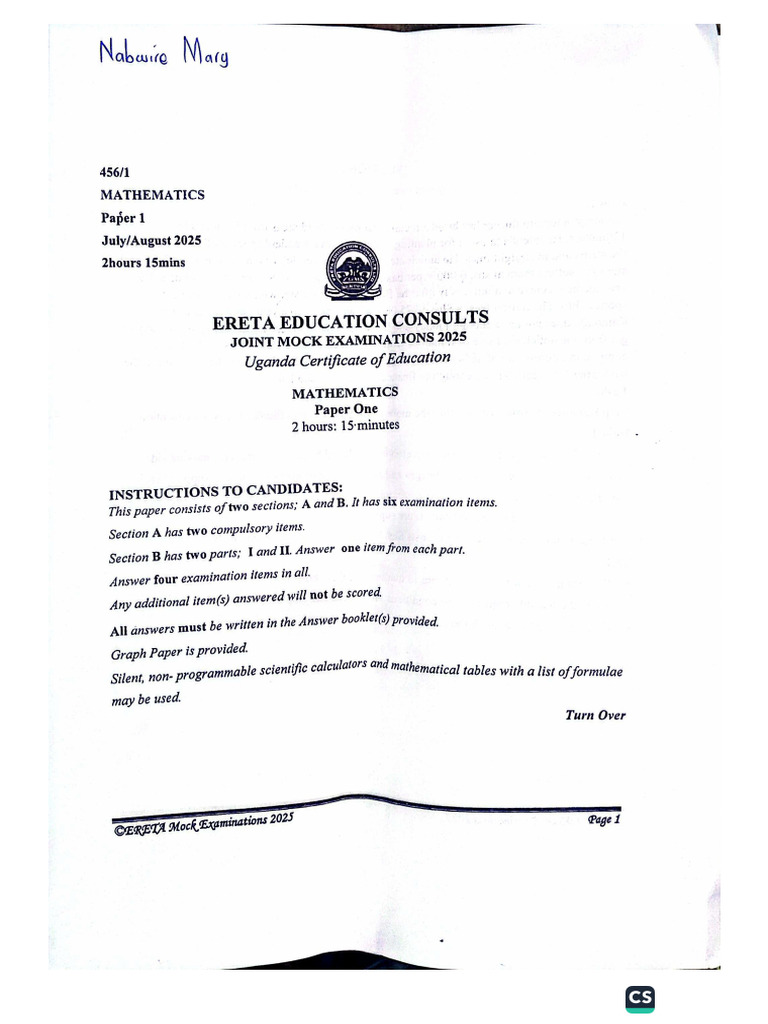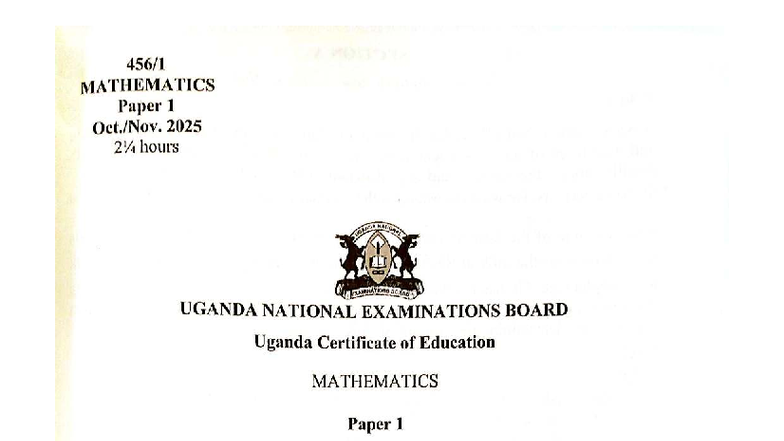 UCE MTC 2025 - Mathematics Paper 1 Exam Guide - Studocu