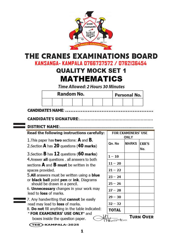 UCE Mathematics Paper 1 2025: Exam Instructions & Problem Solving Guide ...