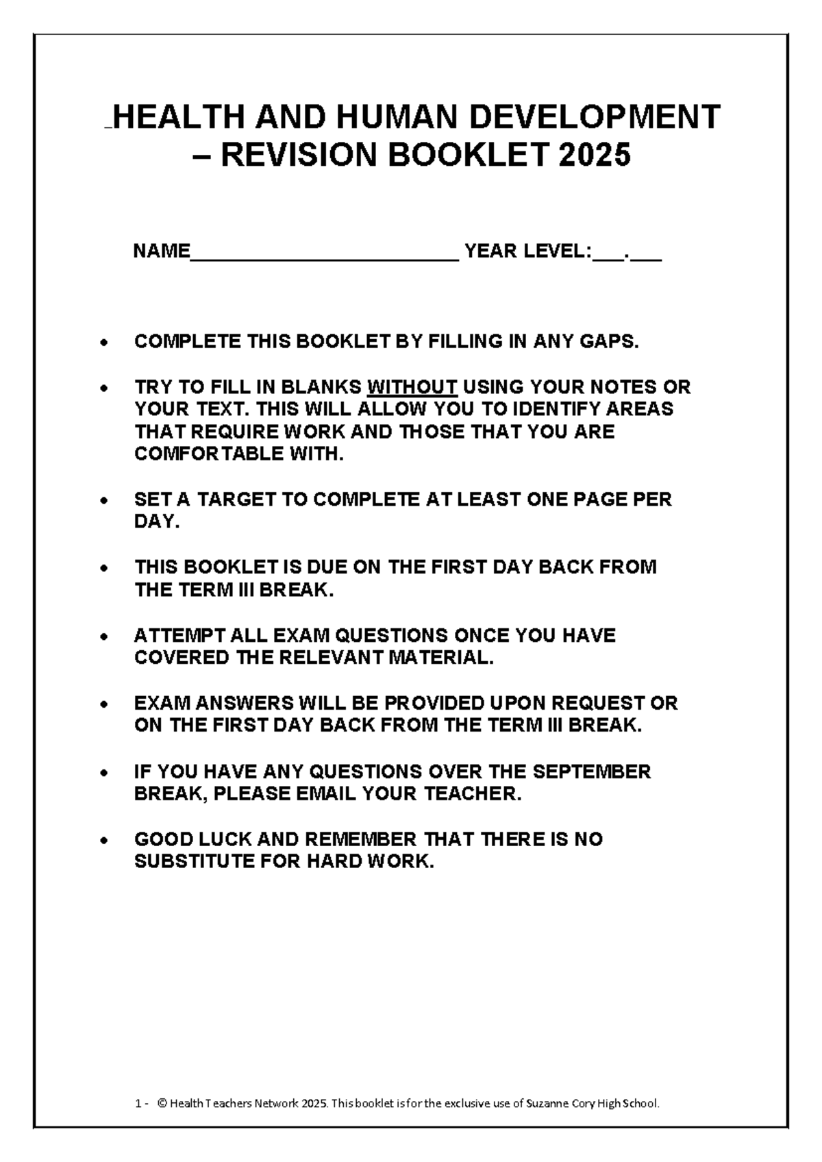 HHD Revision Booklet 2025: Complete Exam Preparation Guide - Studocu