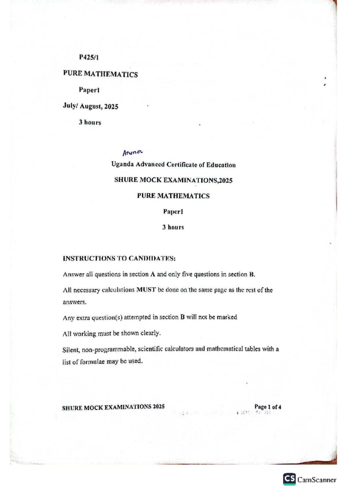 Shure UACE MTC 1 - Pure Mathematics Mock Exam 2025 - Studocu
