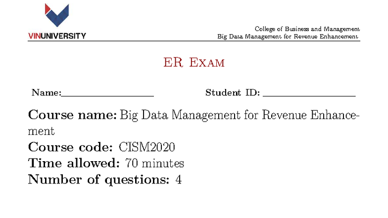 CISM2020 Big Data Management ER Exam Mock Practice Fall 2025 - Studocu
