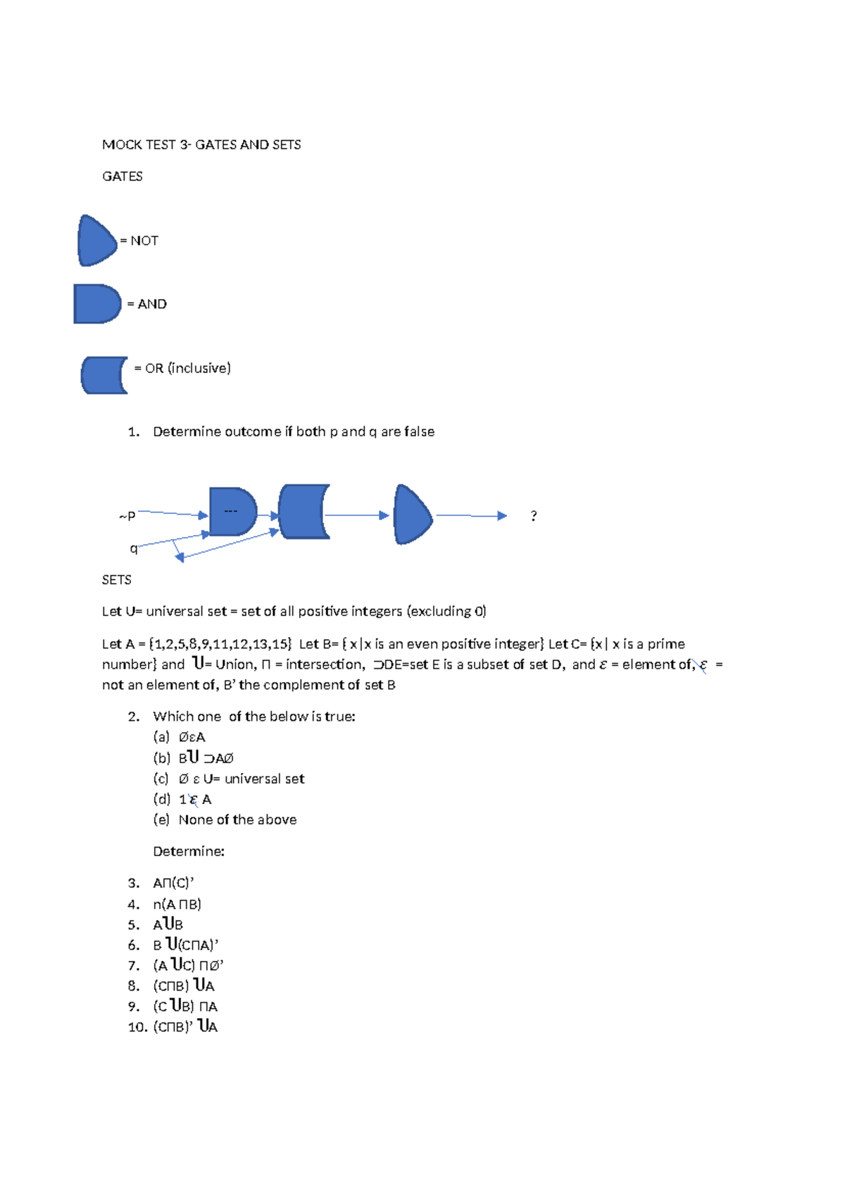 Mock Test 3 - Gates and Sets (GATES) with Logical Operations - Studocu