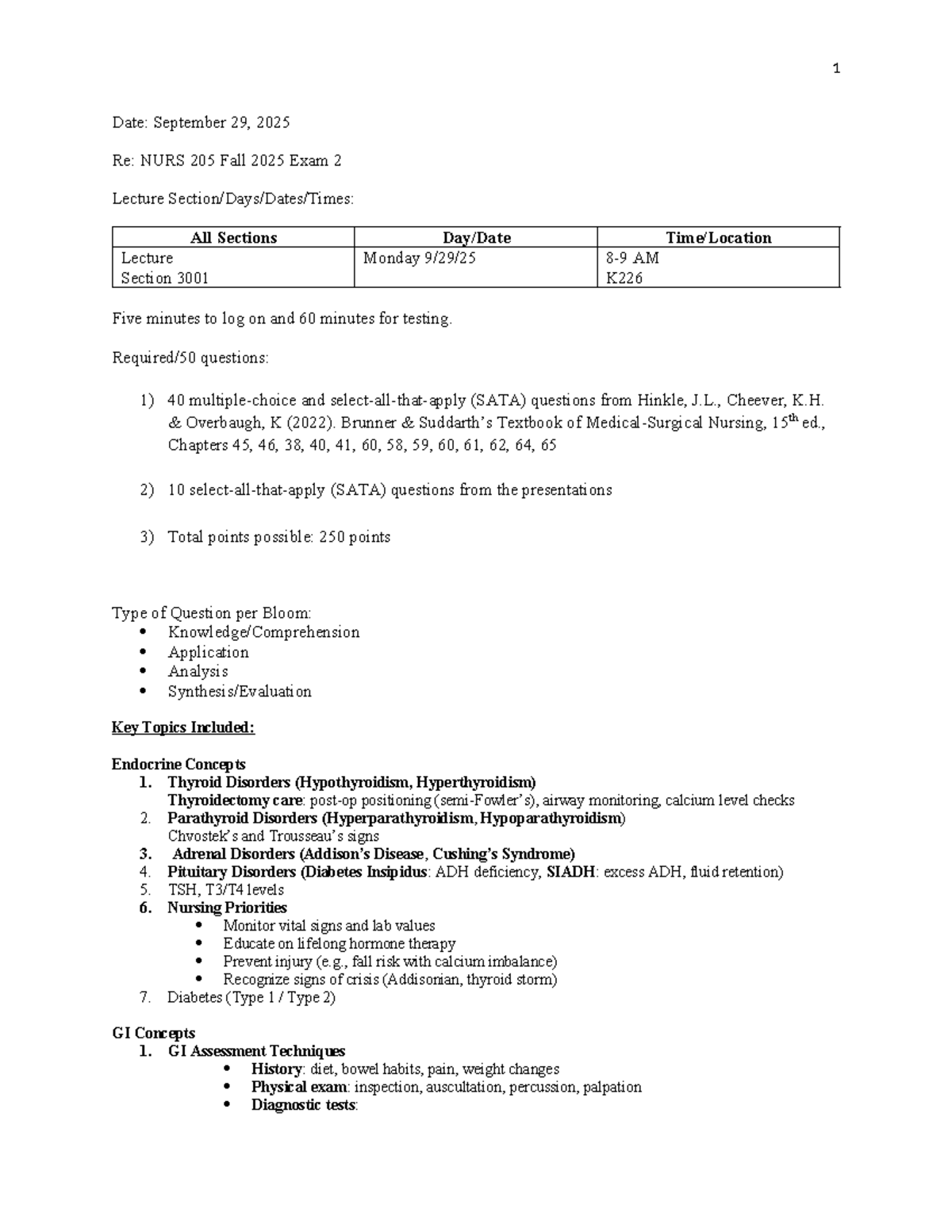 NURS 205 Fall 2025 Exam 2 Student Blueprint Guide - Studocu