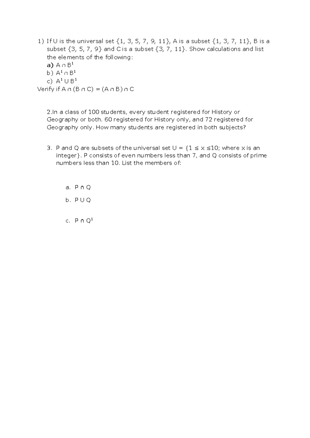 Classwork Set1 2025 - Practice Activity on Sets and Subsets - Studocu