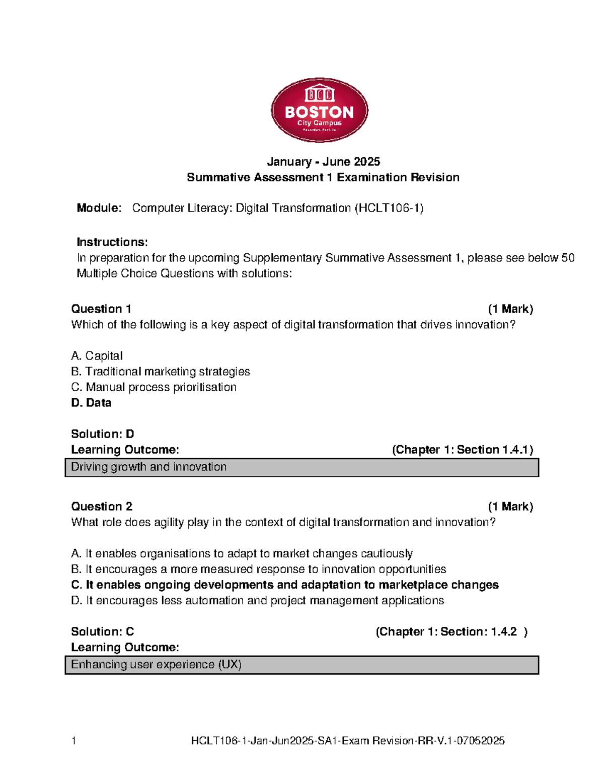 HCLT106-1 January-June 2025 Summative Assessment 1 Exam Revision Guide ...