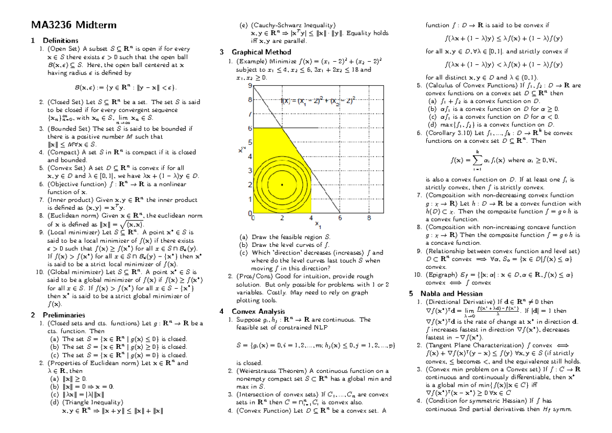 MA3236 Midterm 1 Cheat Sheet: Convex Functions and Sets - Studocu