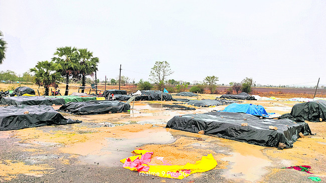 చెరువుల్లా మారిన కొనుగోలుసెంటర్లు