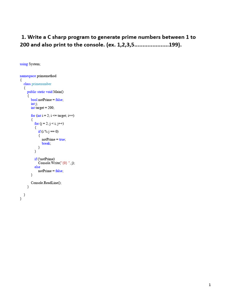 Write A C Sharp Program To Generate Prime Numbers Between 1 To 200 and ...