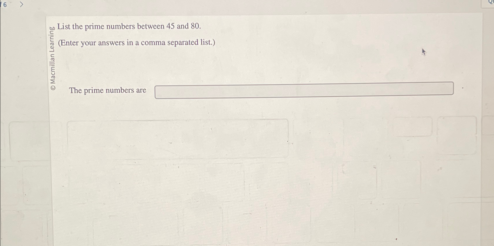 Solved 6oo List the prime numbers between 45 ο»Ώand 80 .(Enter | Chegg.com