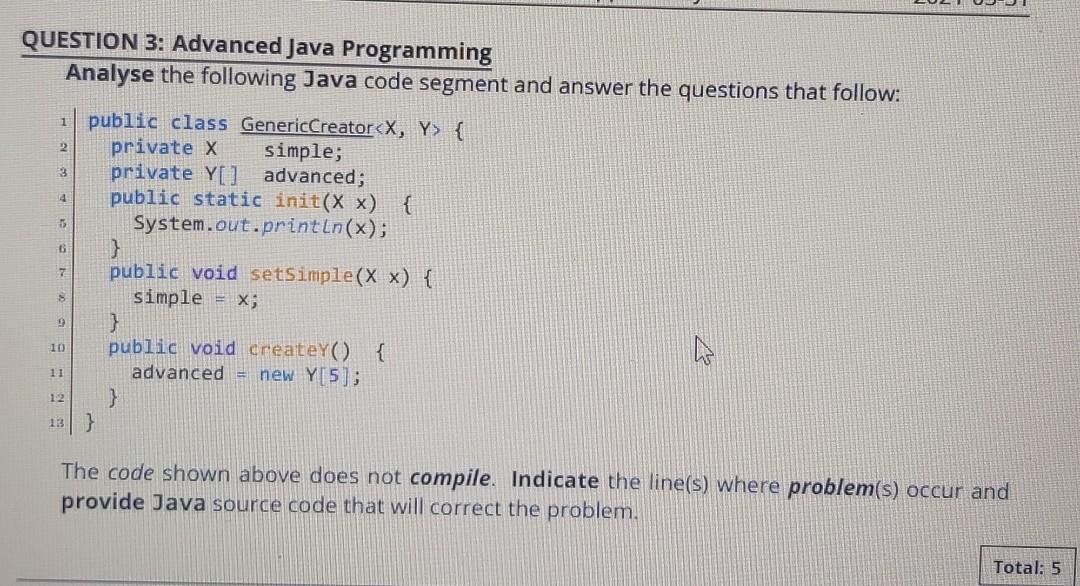 Based on this image's title: “Solved QUESTION 3: Advanced Java Programming Analyse the | Chegg.com”