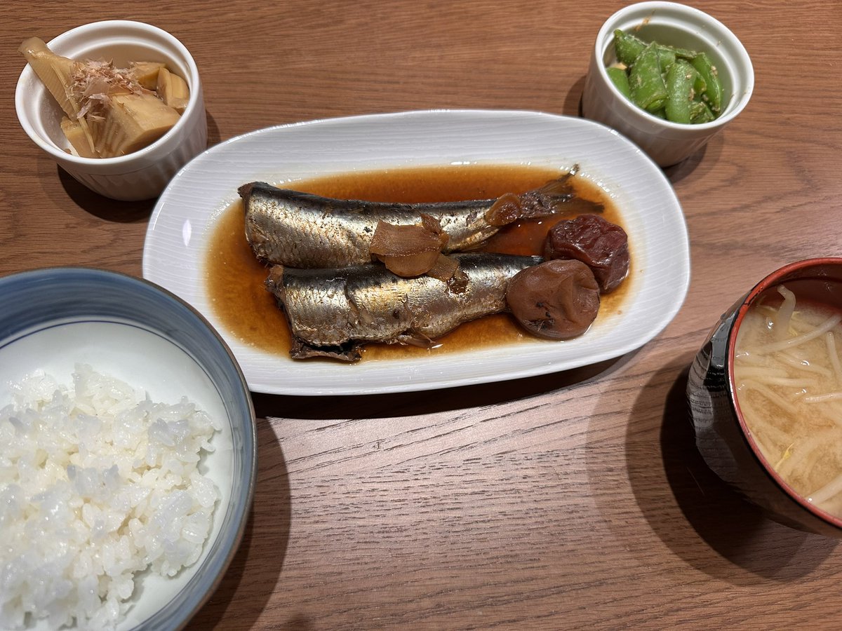 見習い33日目 本日はいわしの梅煮 圧力鍋で作っているので骨まで食べられます ️ 付け合わせはたけのこの土佐煮とスナップえんどうの胡麻和え ...