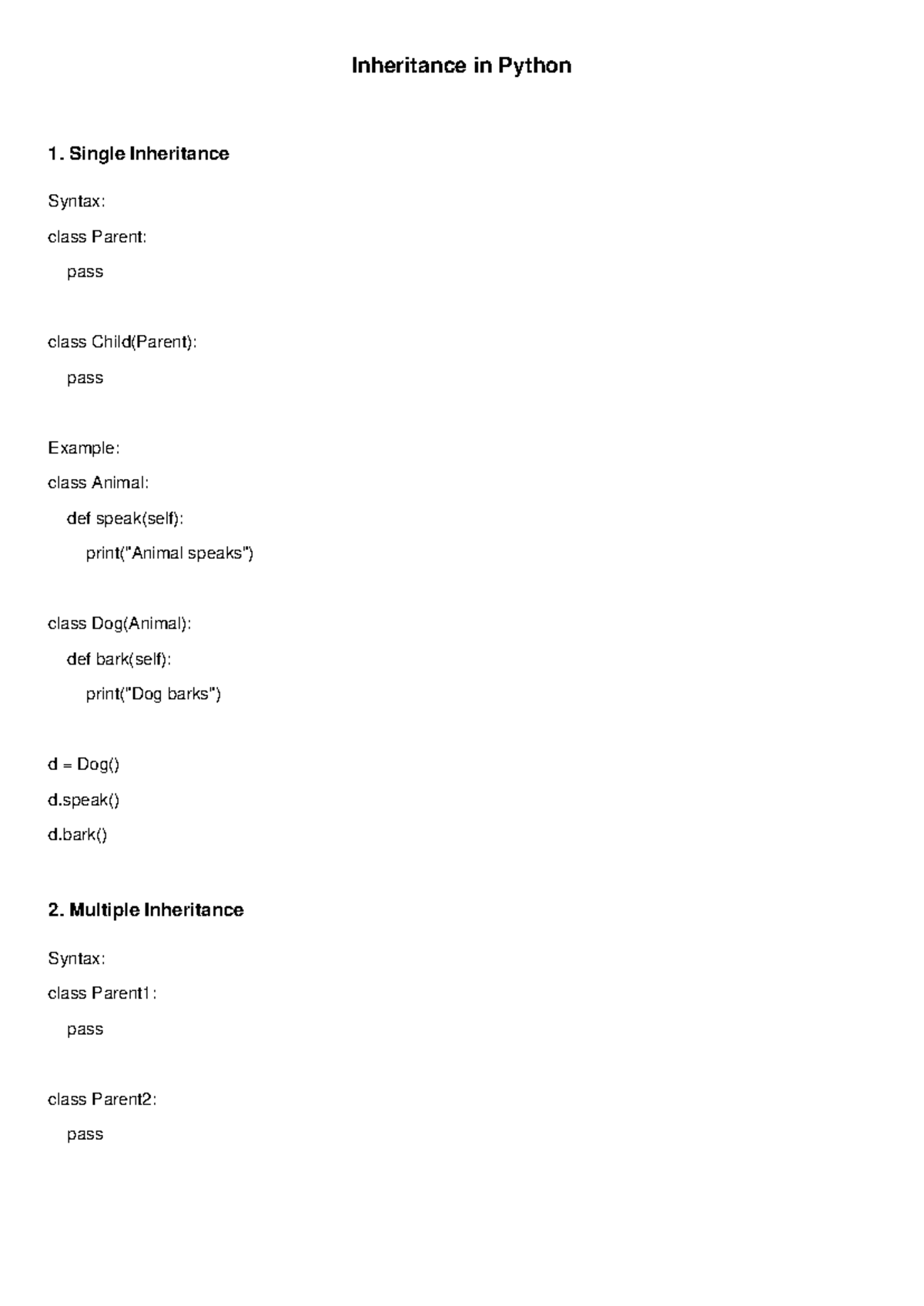 Python Inheritance Types: Single, Multiple, Multilevel, Hybrid - Studocu