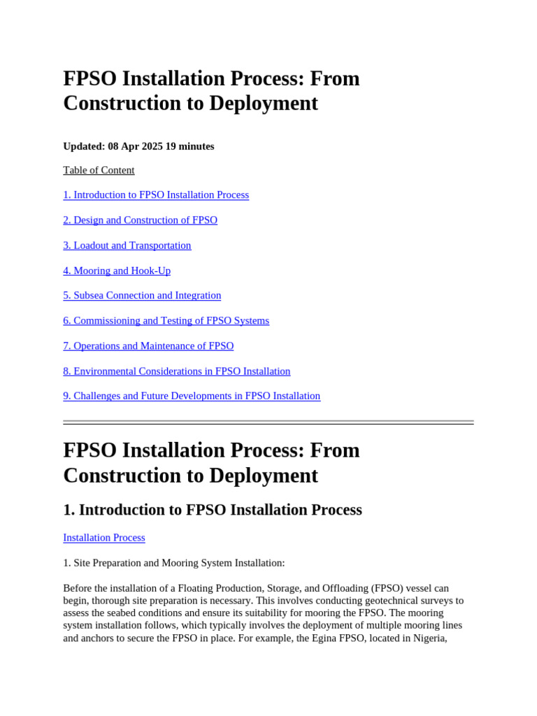 FPSO Installation Process | PDF | Oil Spill | Waste Management