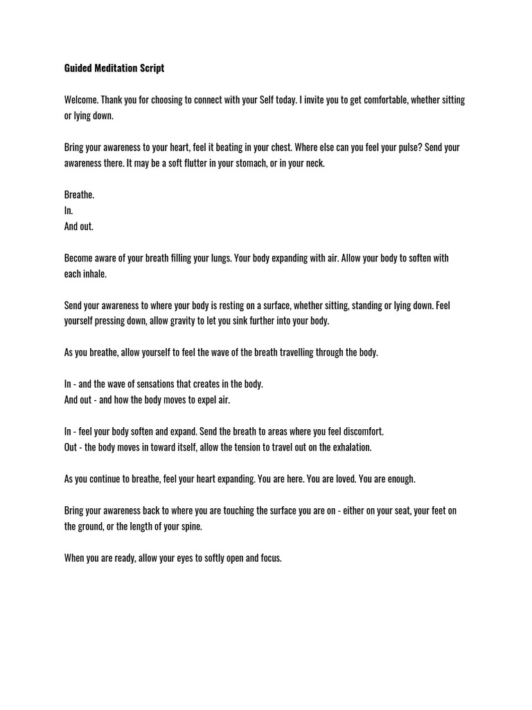 Guided Meditation Script | PDF | Breathing | Relaxation (Psychology)