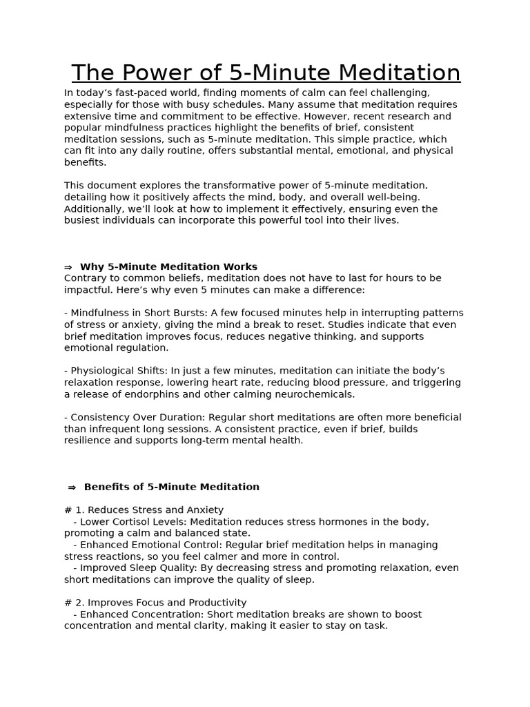 The Power of 5min Meditation | PDF | Meditation | Relaxation (Psychology)
