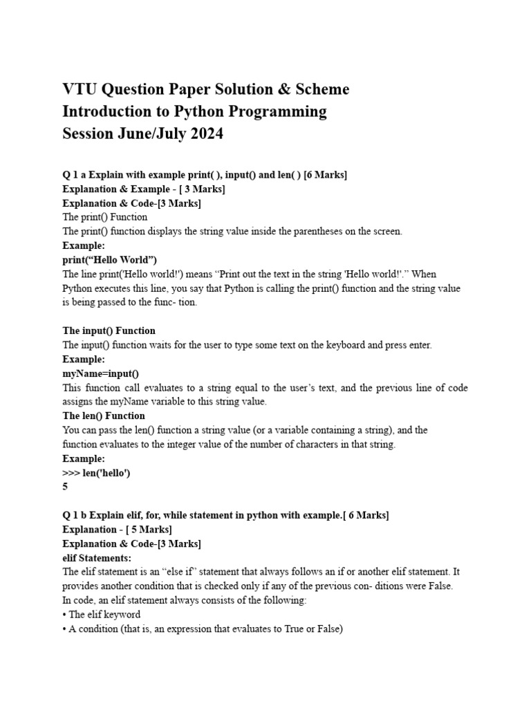 VTU Introduction To Python Programming Model Question Paper With Answer ...