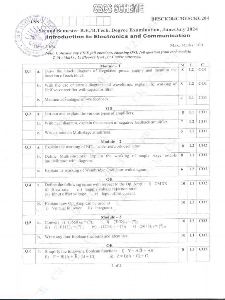 VTU Exam Question Paper With Solution of BESCK204C Introduction To ...