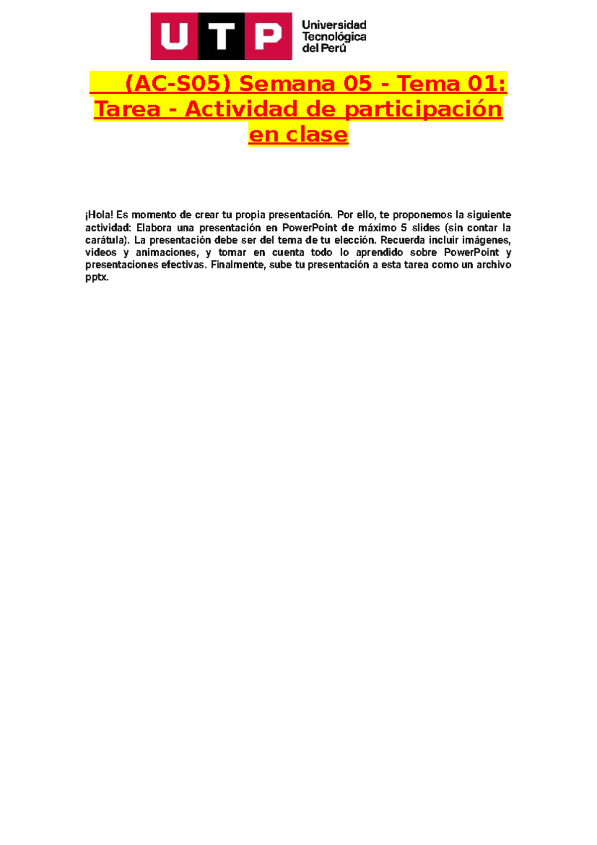 AC-S05 Semana 05 - Tema 01: Tarea de Presentación en PowerPoint - Studocu