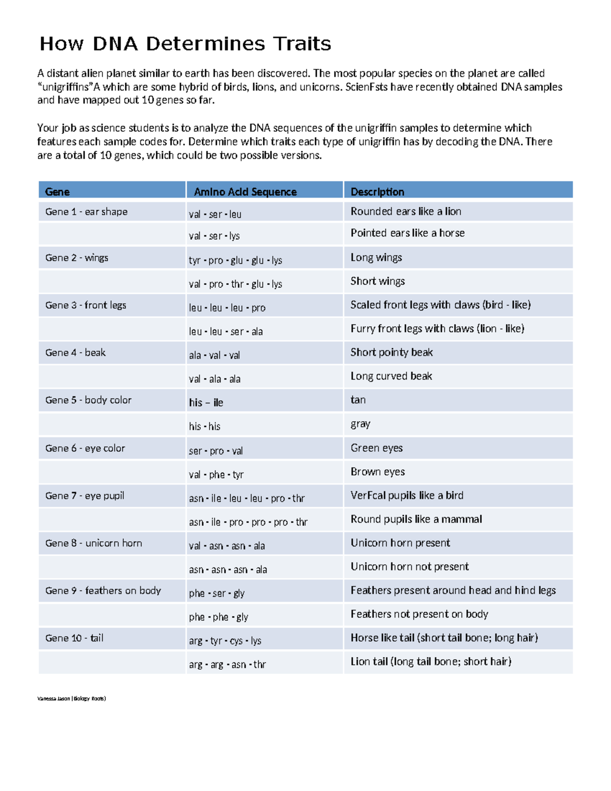 Biology Roots: Unigriffin DNA Traits Analysis & Protein Synthesis - Studocu