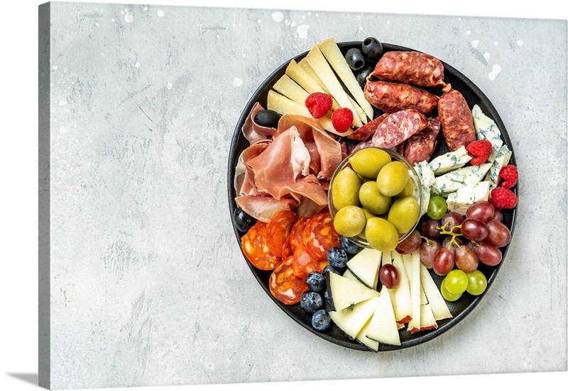 Charcuterie Board Salami, Prosciutto, With Green And Black Olives ...