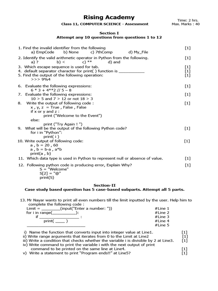 Based on this image's title: “Python Programming Assessment Questions | PDF | Numbers | String ...”