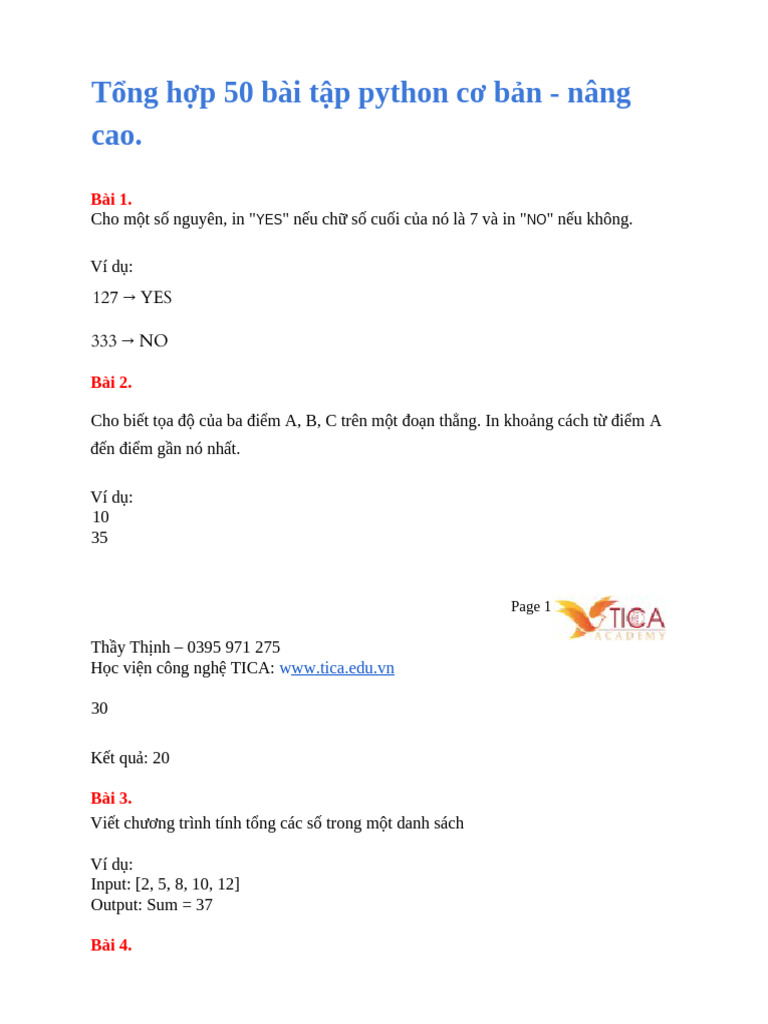 100 Bài tập Python cơ bản có lời giải (code mẫu)