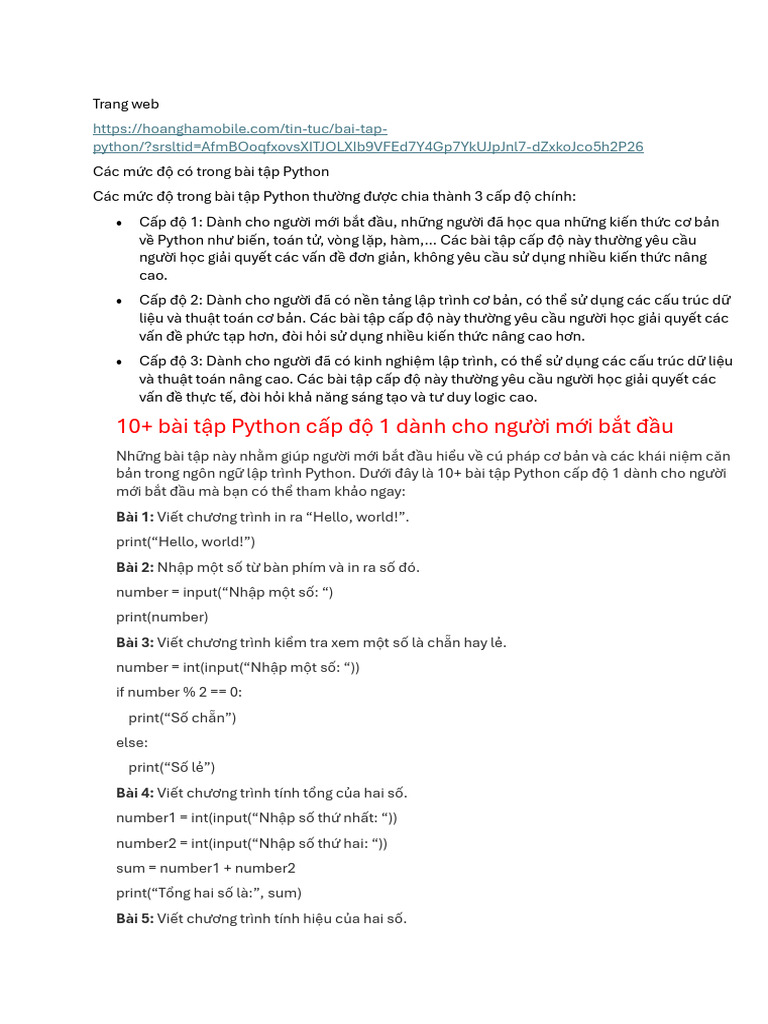 BÀI TẬP PYTHON CƠ BẢN | PDF