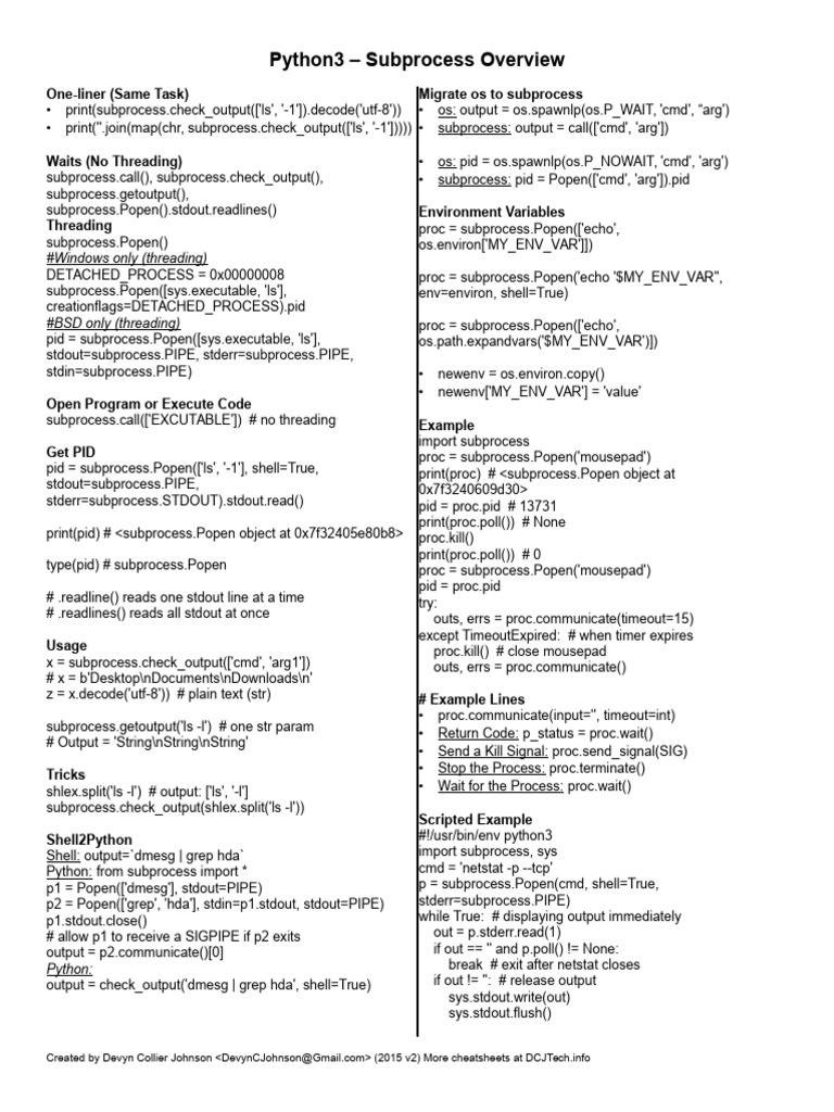 Python3 Subprocess Overview Cheatsheet | PDF | Concurrency (Computer ...