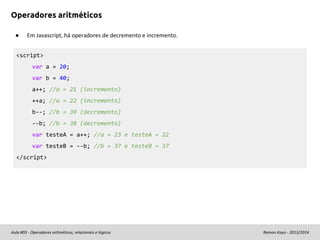 JavaScript: Aula 4 - Operadores aritméticos e lógicos - YouTube