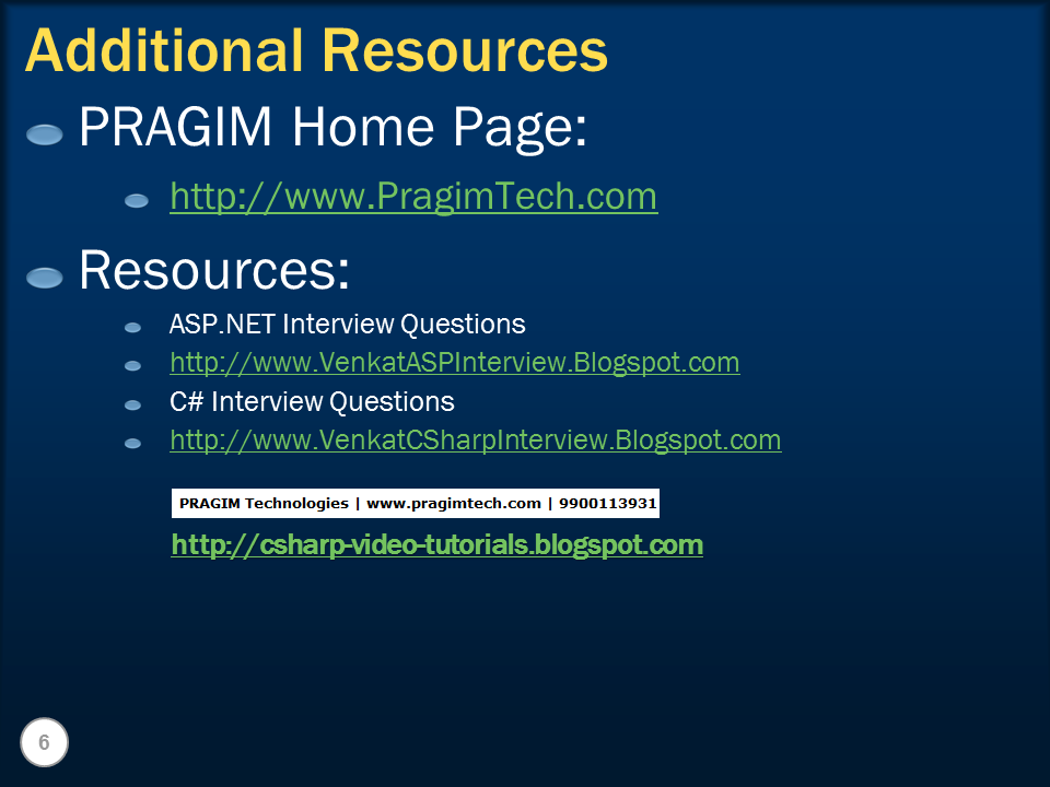 Sql server, .net and c# video tutorial: ASP.NET Core MVC tutorial - Slides