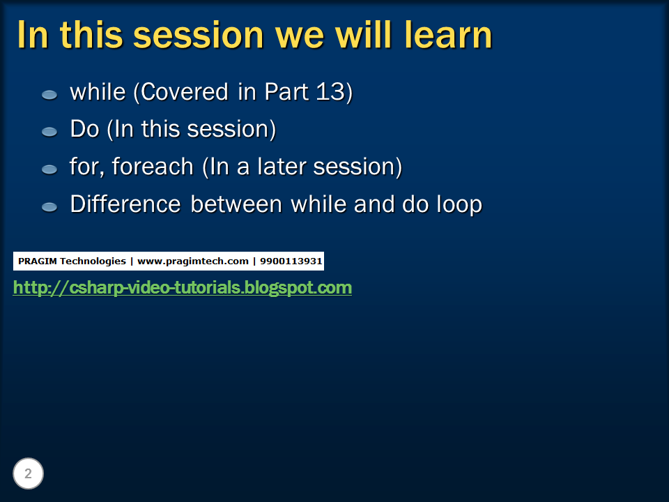 Sql server, .net and c# video tutorial: Part 14 – Loops in C# - do ...