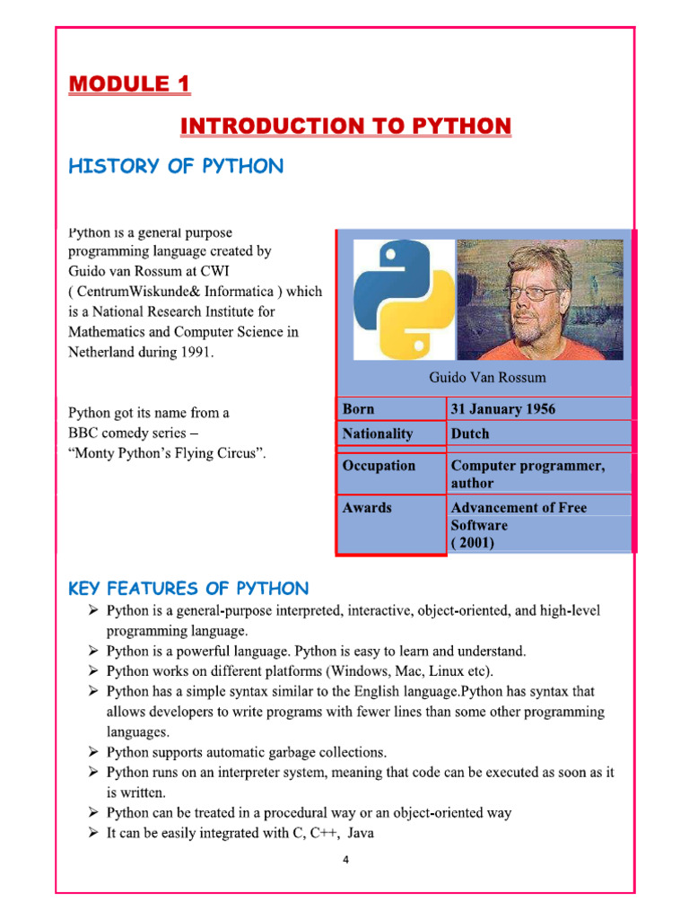 Python Notes FOR END SEM - Module 1: Basics of Python Introduction ...
