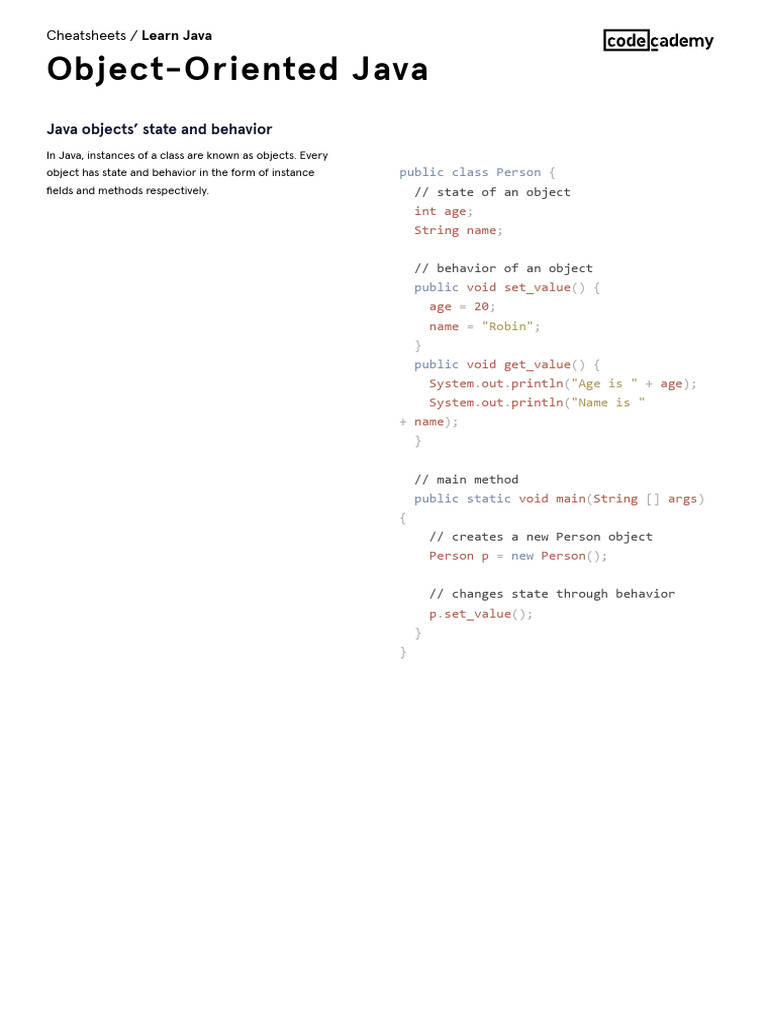 Learn Java_ Object-Oriented Java Cheatsheet _ Codecademy | PDF ...