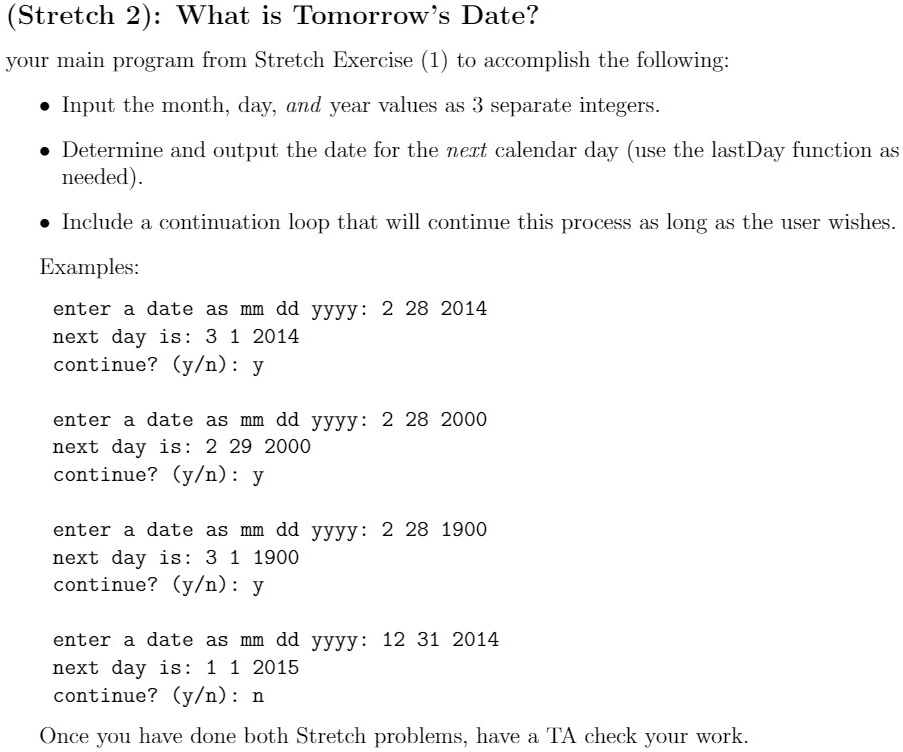 (Stretch 2): What is Tomorrow's Date? your main program from Stretch ...